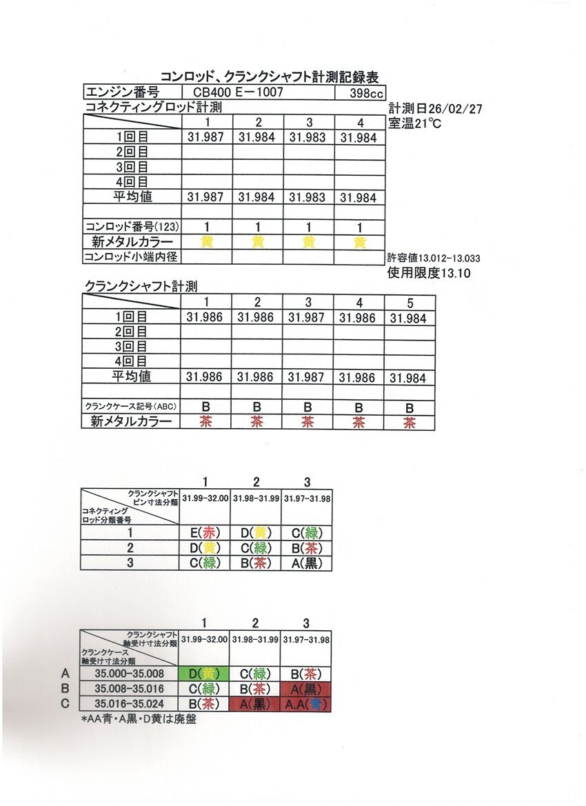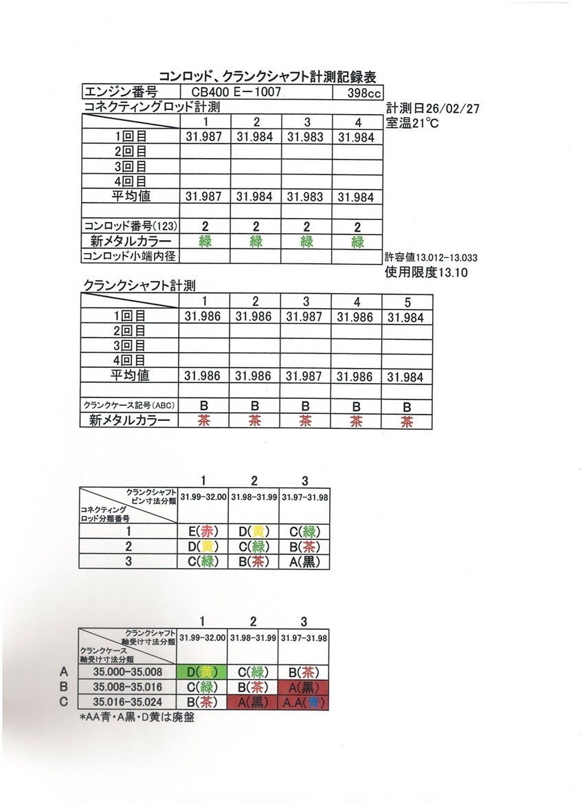 398クランクの#3に傷がある事でメタル側にも