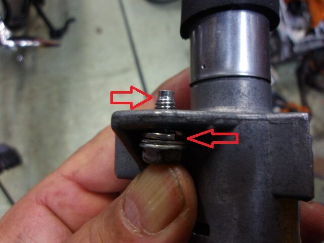 スイングアームのピポットシャフトが緩んでいる